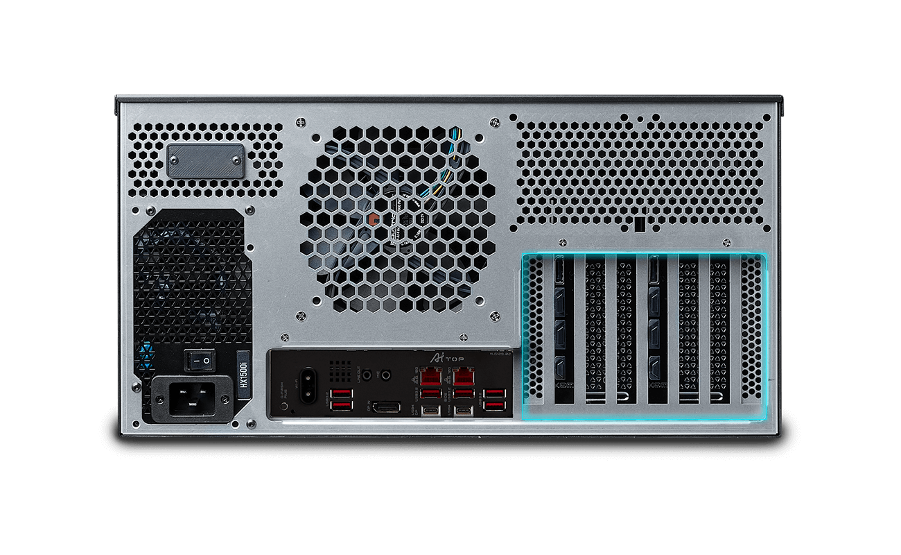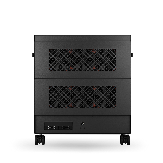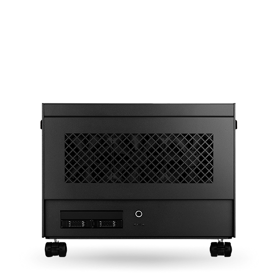 Rear of rack supports installation of two full length, full-height PCIe GPUs, compatible with any manufacturer or model.