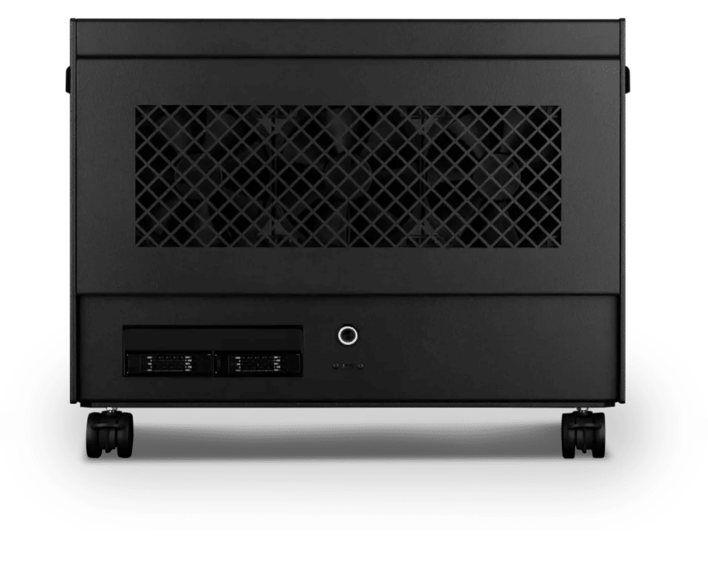 Supports two full-size GPUs alongside a liquid-cooled  Threadripper platform, with tool-less serviceability.